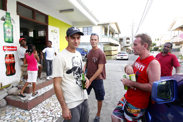 | Trojice Francouzů z Guadeloupe, kteří jsou u malíře na návštěvě a se kterými se tu u něho seznámím. To ještě netuším, že to budou oni, kdo mě unese z ráje. |