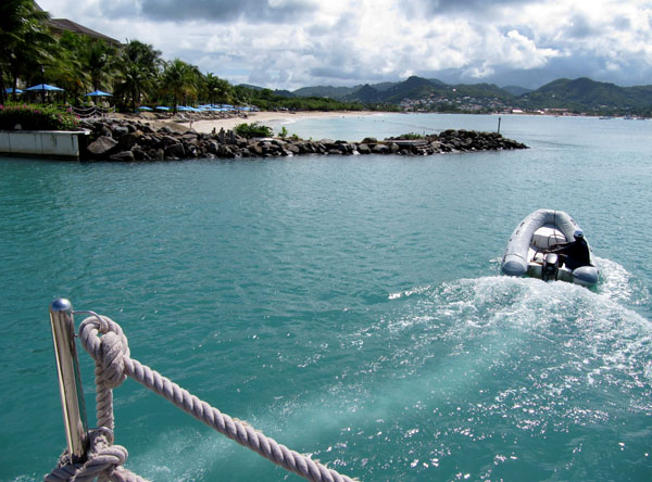 | Plavíme se 31 mílí na ostrov Svaté Lucie. Vítr je slabý, cesta zdlouhavá a mě lehce nevolno. |