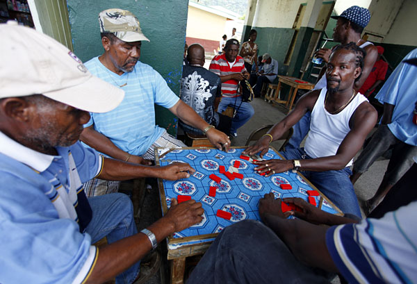 | Pokračuji rušnou ulicí dál. Chlapi tu krátí chvíle hrou v domino. |